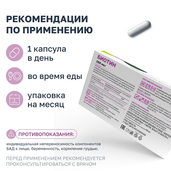 ✓ Подробная инструкция по применению Vitascience Биотин капсулы 150мкг, №30