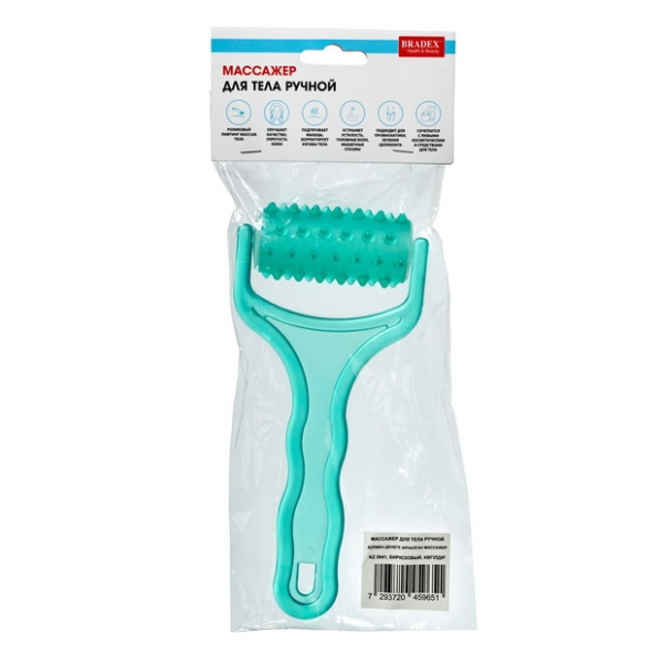 Массажер для тела ручной - простой и эффективный способ повысить упругость, тонус кожи, скорректировать фигуру в домашних условиях. Массаж шейно-воротниковой зоны облегчит головные боли, поможет расслабиться, улучшить эмоциональный фон, восстановить полноценный, здоровый сон. Массаж спины снимет мышечный спазм, чувство усталости и забитости мышц после напряженного рабочего дня, интенсивных физических нагрузок. Массаж бедер, ягодиц и живота поможет в борьбе с целлюлитом. Роликовый массажер прост в применении. Он снабжен удобной, прочной пластиковой ручкой, которая делает процедуру комфортной. Возрастных ограничений по использованию изделия нет.