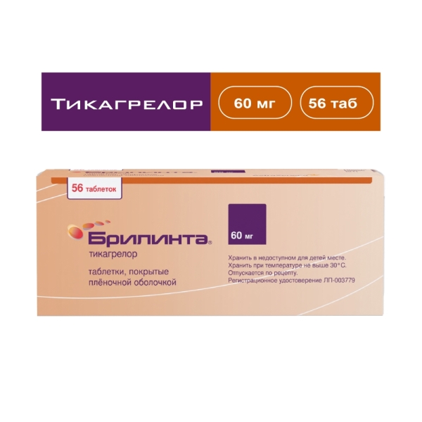 Брилинта®, 60 мг, таблетки, покрытые пленочной оболочкой