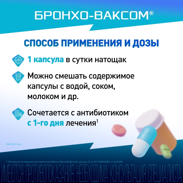 ✓ Подробная инструкция по применению Бронхо-Ваксом детский капсулы 3,5мг, №10