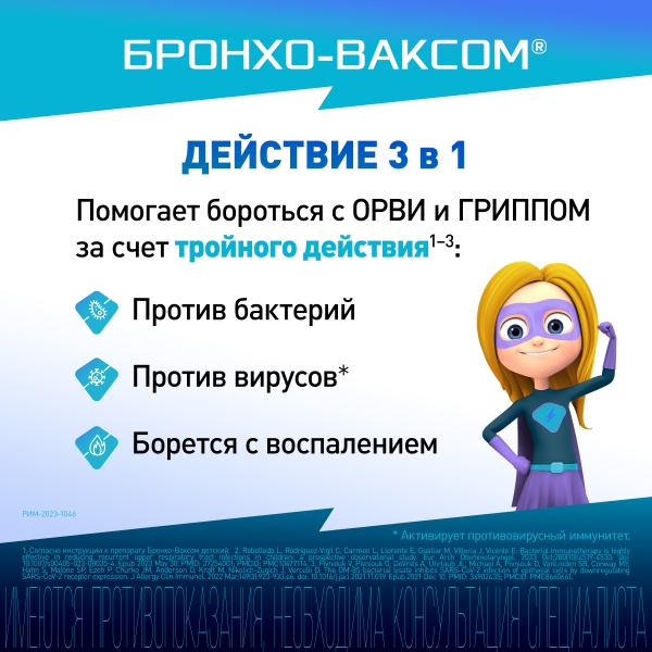 В совокупности эти данные служат подтверждением того, что препарат Бронхо-Ваксом® детский запускает биологические реакции, усиливающие иммунную защиту организма от инфекций дыхательных путей.