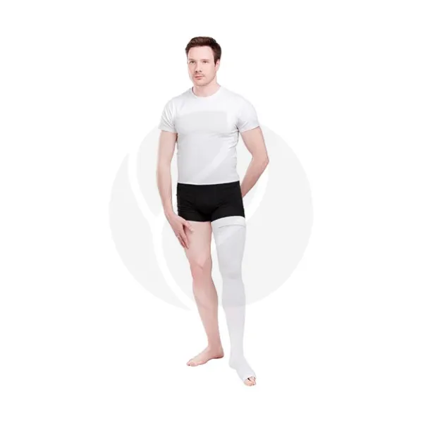 Чулок с открывающейся носочной частью и эластичной некомпрессионной вставкой на внутренней поверхности бедра. Фиксируется с помощью силиконовой ленты.