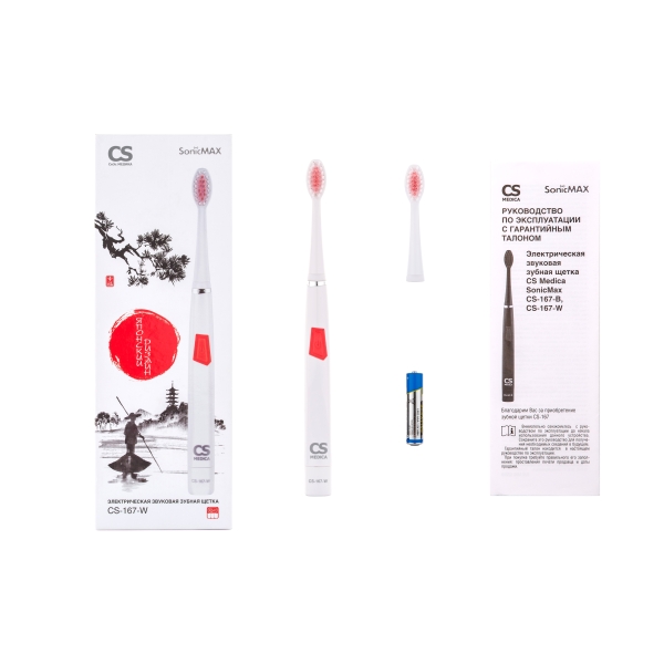 Электрическая звуковая зубная щетка SonicMax CS-167-B/W средней жесткости с 2 насадками. Компактная и легкая (вес – 20 г). Дизайн в японском стиле. Высокая звуковая частота.