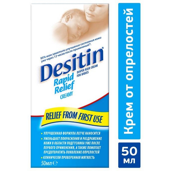 Desitin Детский крем от опрелостей образует защитный слой на коже вашего ребенка, успокаивая и облегчая сыпь и дискомфорт, обеспечивая облегчение уже после первого применения.