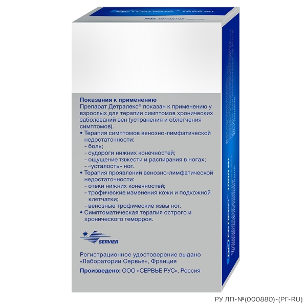 Препарат Детралекс® показан к применению у взрослых для терапии симптомов хронических заболеваний вен (устранения и облегчения симптомов).