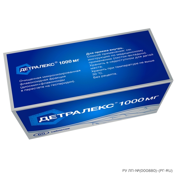 ✓ Цена на Детралекс таблетки покрыт. п/о 1000мг, №60 указана на сайте и в мобильном приложении
