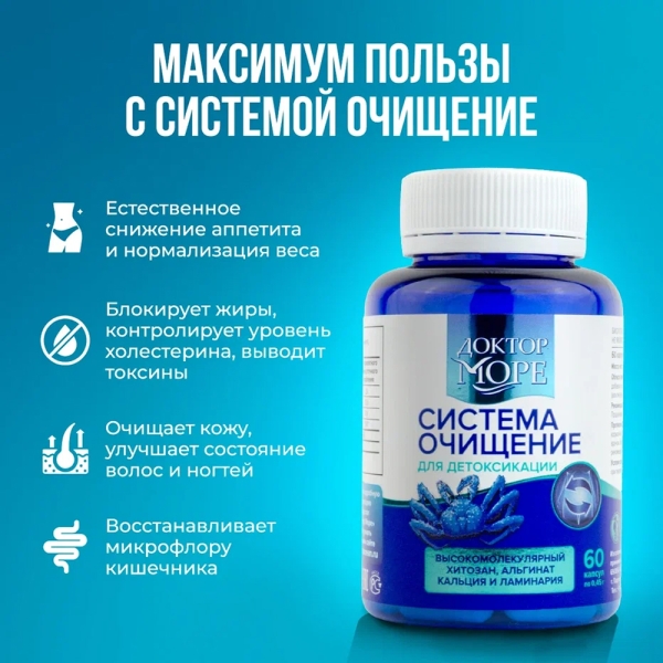 ✓ Купить Доктор море Система очищения капсулы, №60 можно на сайте, в мобильном приложении и в аптеках Вита