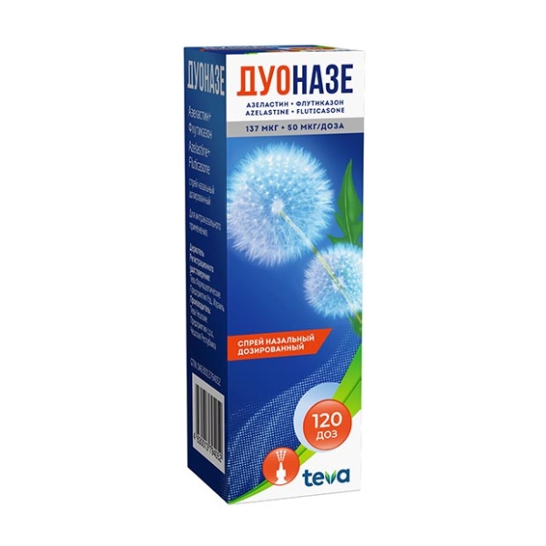 Препарат Дуоназе содержит действующие вещества азеластин и флутиказон. Препарат Дуоназе относится к группе препаратов для лечения заболеваний носа.