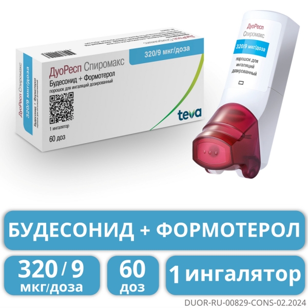 ✓ Подробная инструкция по применению Дуоресп Спиромакс порошок д/ингал. 320/9мкг/доза, 60доз