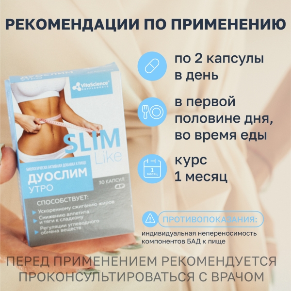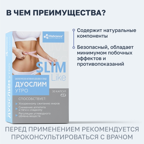 ✓ Купить Vitascience Дуослим утро капсулы, №30 можно на сайте, в мобильном приложении и в аптеках Вита