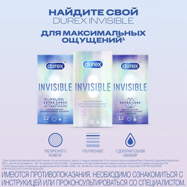 ✓ Цена на Durex Invisible XXL презервативы ультратонкие, №12 указана на сайте и в мобильном приложении