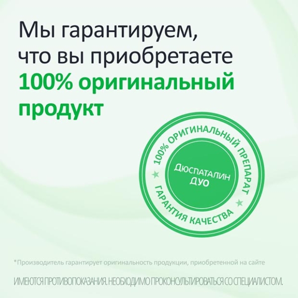 Перед приемом препарата Дюспаталин® Дуо проконсультируйтесь с лечащим врачом или работником аптеки.
