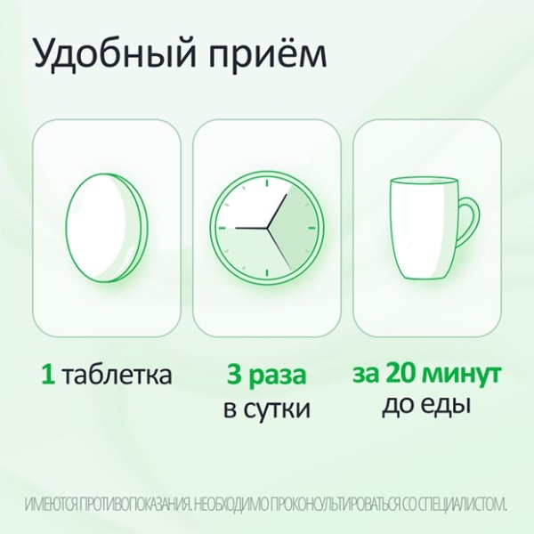 Препарат следует принимать внутрь, до приема пищи, не разжевывать и не измельчать таблетку, проглатывать целиком, запивая водой.