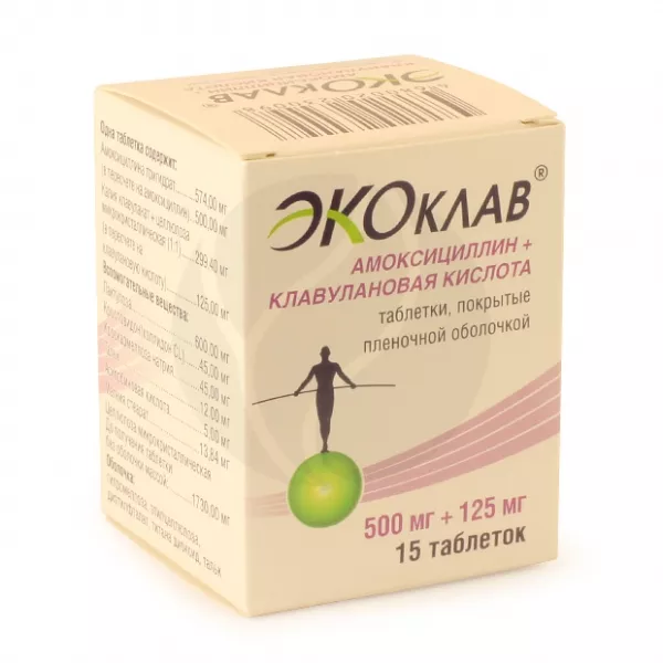 ✓ Подробная инструкция по применению Экоклав таблетки п/о 500+125мг, №15