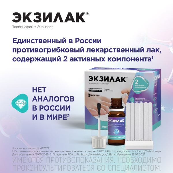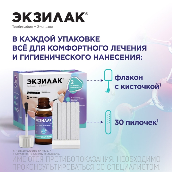 Экзилак, 4 % + 3 %, лак для ногтей лекарственный