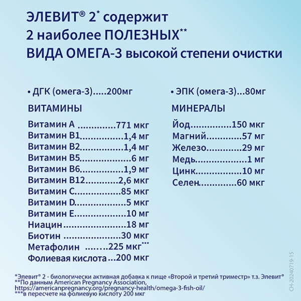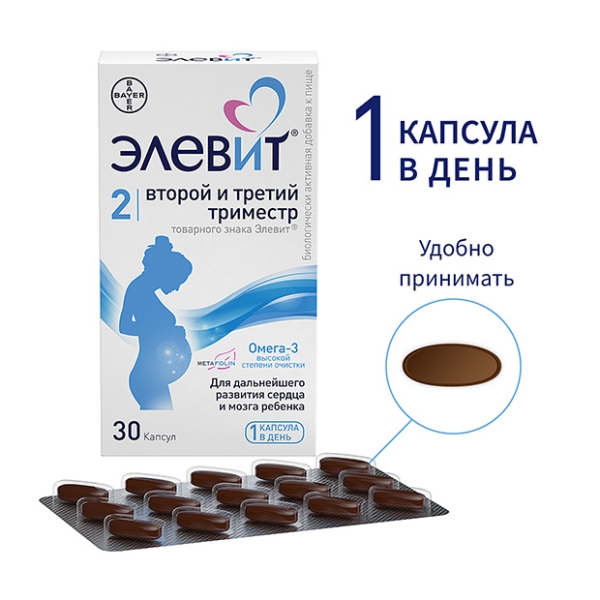 ✓ Цена на Элевит-2 второй и третий триместр капсулы, №30 указана на сайте и в мобильном приложении
