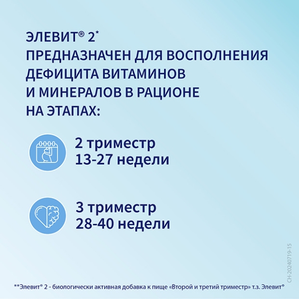 ✓ Купить Элевит-2 второй и третий триместр капсулы, №30 можно на сайте, в мобильном приложении и в аптеках Вита
