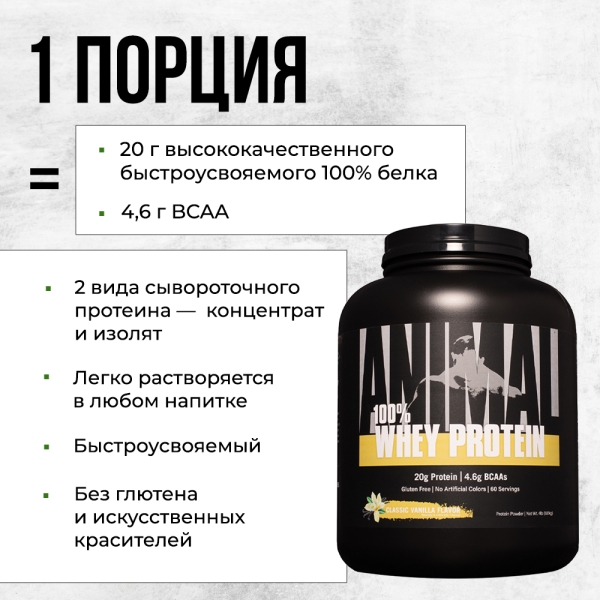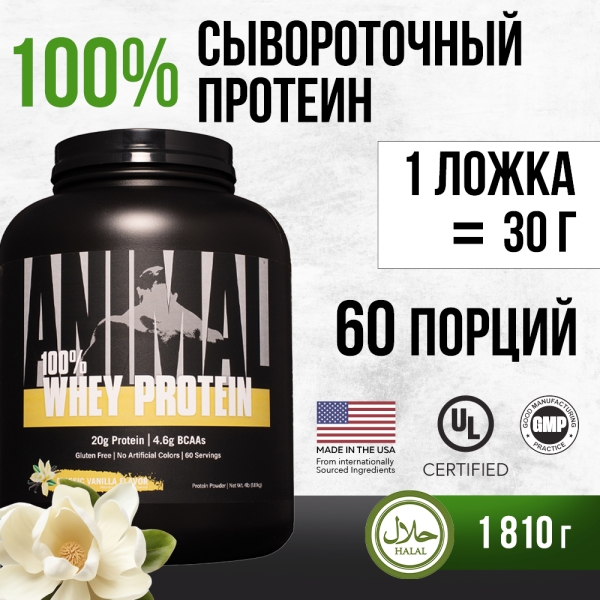 ✓ Цена на Animal Whey 100% Протеин порошок Ваниль, 1810г указана на сайте и в мобильном приложении