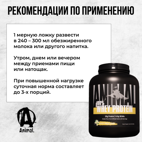 ✓ Подробная инструкция по применению Animal Whey 100% Протеин порошок Ваниль, 1810г