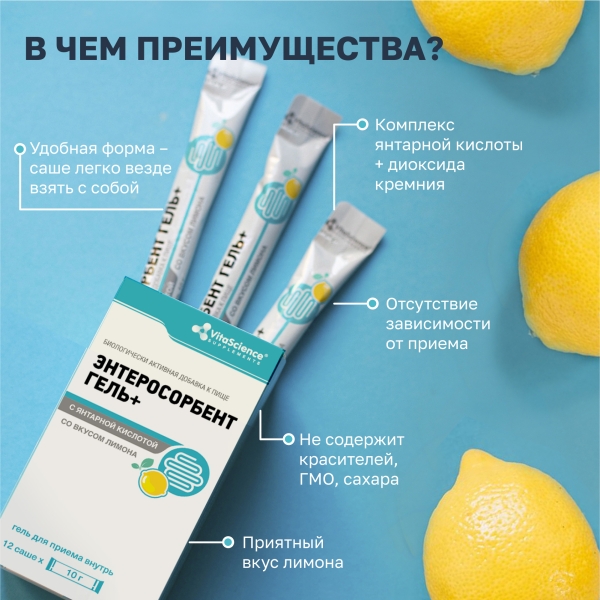 ✓ Купить Vitascience Энтеросорбент Гель+ со вкусом лимона гель д/приема внутрь , 10г №12 можно на сайте, в мобильном приложении и в аптеках Вита