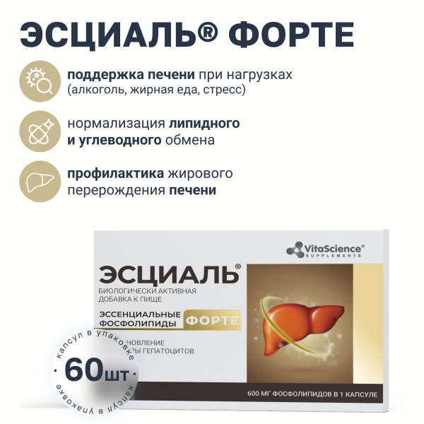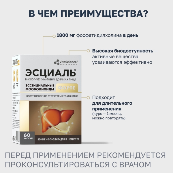✓ Купить Vitascience Эсциаль форте капсулы 600мг, №60 можно на сайте, в мобильном приложении и в аптеках Вита