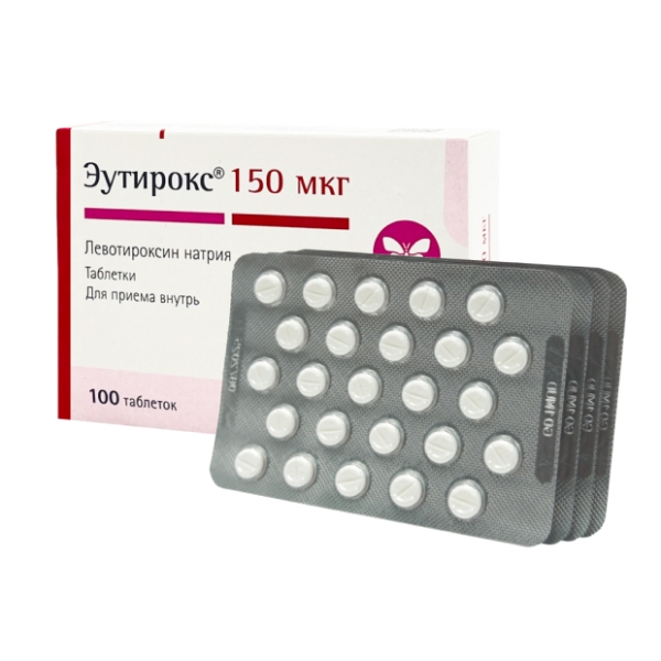 ✓ Цена на Эутирокс таблетки 150мкг, №100 указана на сайте и в мобильном приложении