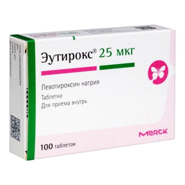 ✓ Цена на Эутирокс таблетки 25мкг, №100 Мерк указана на сайте и в мобильном приложении