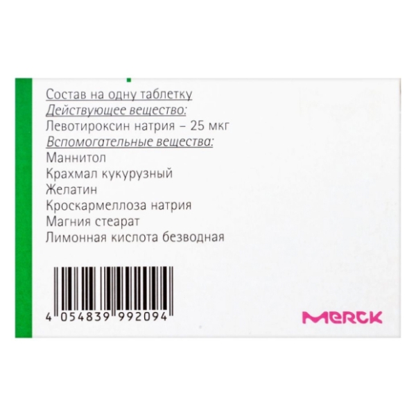 ✓ Подробная инструкция по применению Эутирокс таблетки 25мкг, №100 Мерк