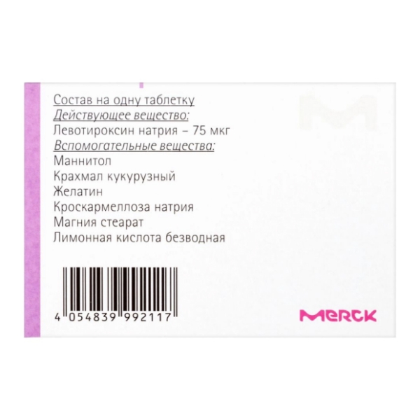 ✓ Подробная инструкция по применению Эутирокс таблетки для приема внутрь 75мкг, №100