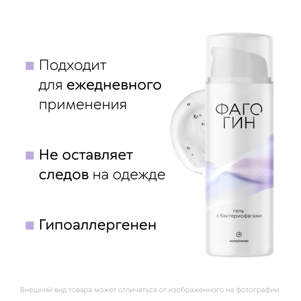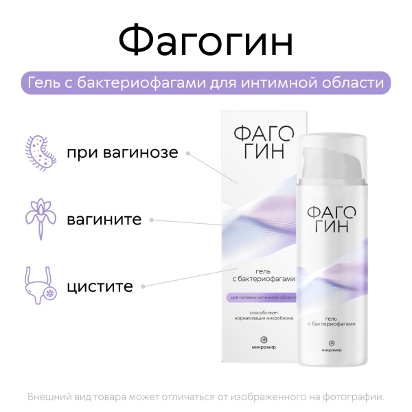 Гель с бактериофагами для гигиены интимной области «Фагогин» (далее – Фагогин) применяют с целью нормализации микрофлоры интимной области. Фагогин способствует предотвращению развития бактериальных инфекций органов интимной области. Фагогин содержит комплекс из 67 видов бактериофагов из коллекции ООО НПЦ «Микромир», подавляющих рост актуальных штаммов патогенных бактерий:
