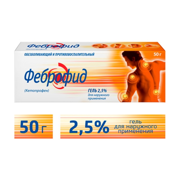 ✓ Цена на Феброфид гель д/наружн. прим. 2,5%, 50г указана на сайте и в мобильном приложении