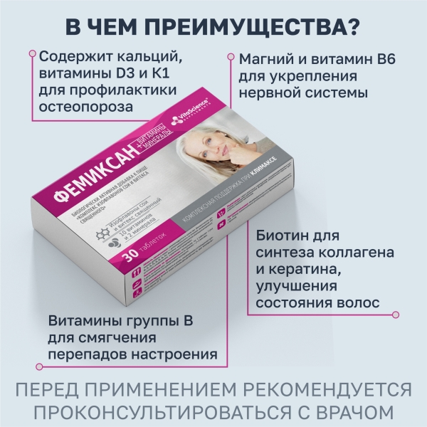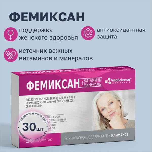 ✓ Цена на Vitascience Фемиксан комплекс изофлавонов сои и витекса священного таблетки, №30 указана на сайте и в мобильном приложении