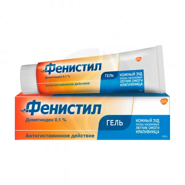 Препарат Фенистил, гель для наружного применения, содержит действующее вещество диметиндена малеат, который является противоаллергическим средством – блокатором Н1-гистаминовых рецепторов и применяется в качестве антигистаминного, противоаллергического и противозудного средства.