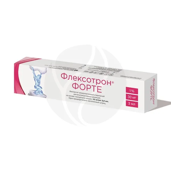 Имплантат вязкоэластичный стерильный для внутрисуставных инъекций ФЛЕКСОТРОН® Форте (FLEXOTRON® Forte), на основе гиалуроната натрия, 10 мг/мл, 3 мл.