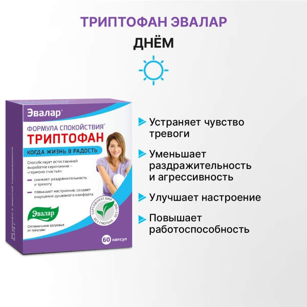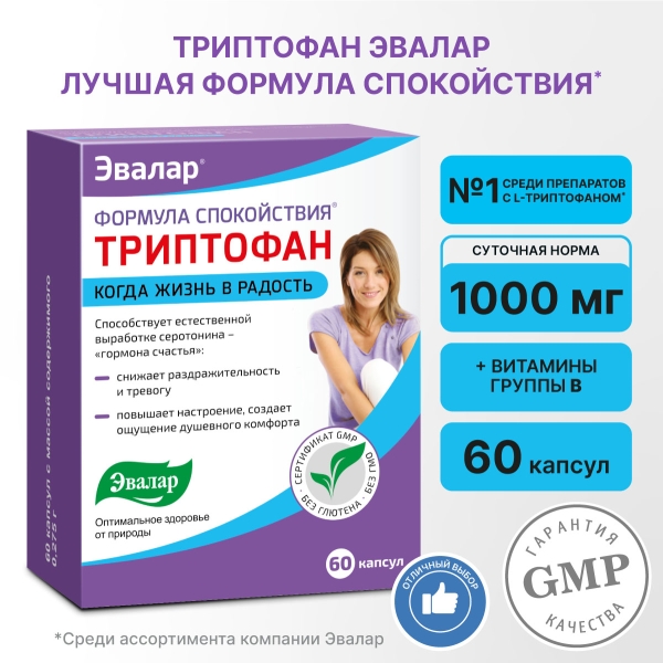✓ Купить Эвалар Формула спокойствия Триптофан капсулы, №60 можно на сайте, в мобильном приложении и в аптеках Вита