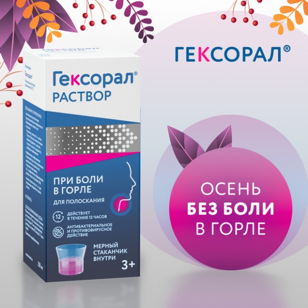 Гексэтидин адгезируется на слизистой оболочке и благодаря этому дает стойкий эффект. В связи с этим препарат следует применять после еды. Препарат «Гексорал®», раствор для местного применения можно использовать только для полоскания полости рта и гортани. Раствор нельзя проглатывать, после применения раствор следует выплюнуть. Необходимо всегда пользоваться неразведенным раствором.