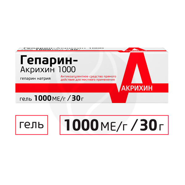 ✓ Цена на Гепарин Акрихин гель д/наружн. прим. 1000МЕ/г, 30г указана на сайте и в мобильном приложении