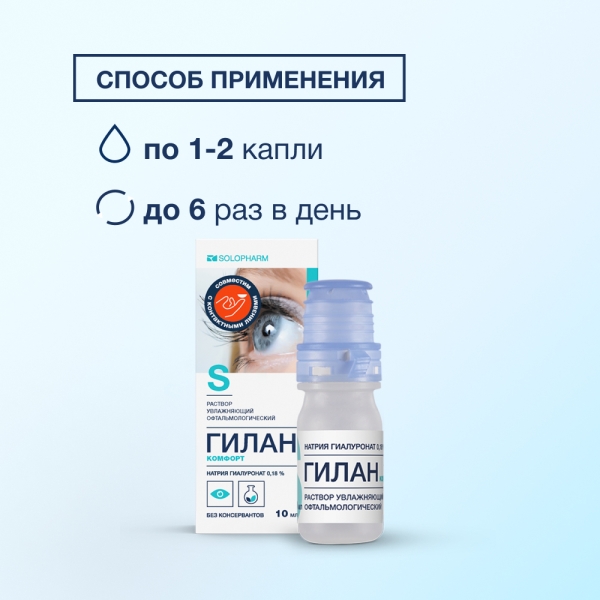 ✓ Подробная инструкция по применению Гилан комфорт раствор увлажн. офтальм. 0,18%, 10мл