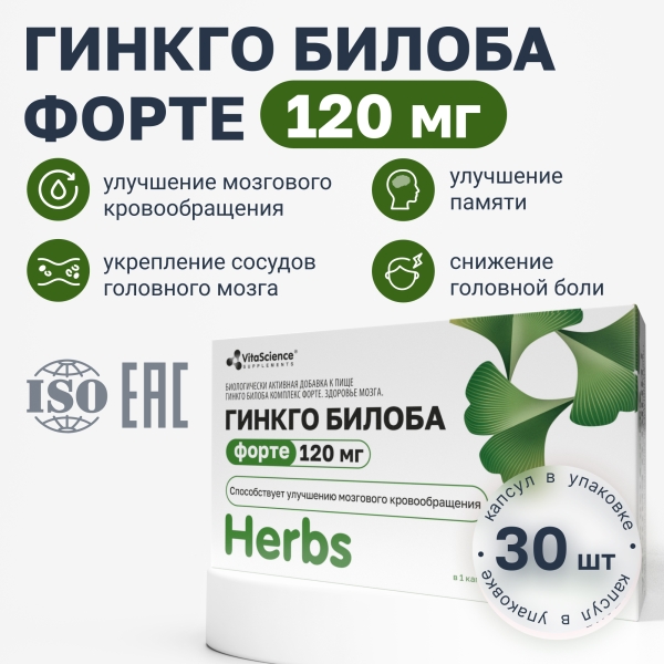 ✓ Купить Vitascience Гинкго билоба Форте 120мг капсулы, №30 можно на сайте, в мобильном приложении и в аптеках Вита