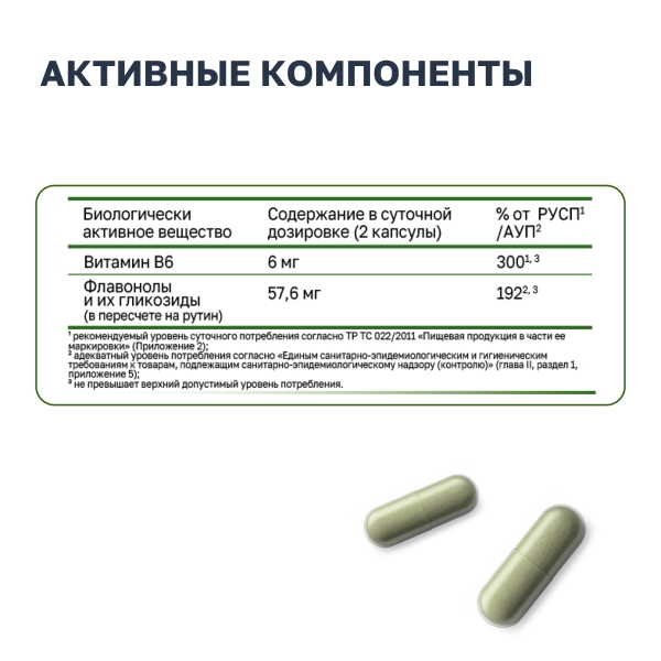 Содержание биологически активного вещества в суточной дозировке (2 капсулы):
