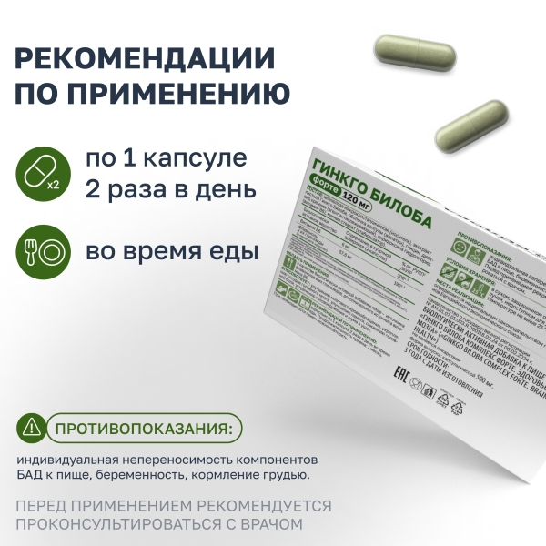 ✓ Подробная инструкция по применению Vitascience Гинкго билоба Форте 120мг капсулы, №30