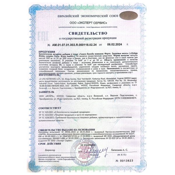 Способствует улучшению мозгового кровообращения, укреплению сосудов головного мозга, улучшению памяти, снижению головной боли, устранению головокружения и шума в ушах.