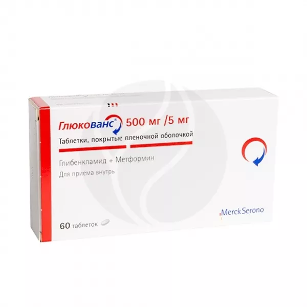 ✓ Купить Глюкованс таблетки покрыт. п/о 500мг+5мг, №60 можно на сайте, в мобильном приложении и в аптеках Вита