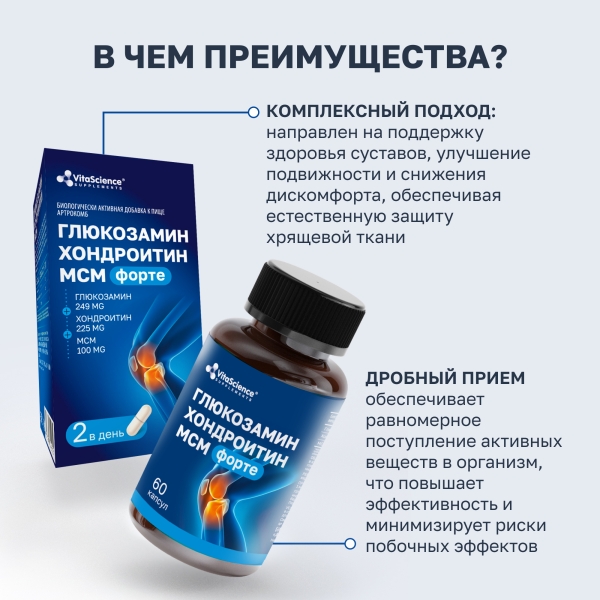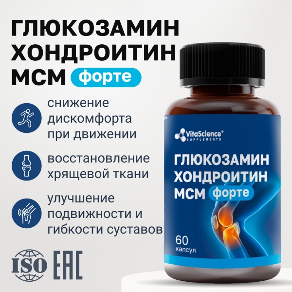 ✓ Купить Vitascience Глюкозамин Хондроитин МСМ Форте капсулы, №60 можно на сайте, в мобильном приложении и в аптеках Вита
