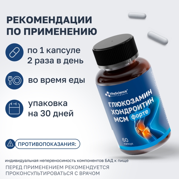 ✓ Подробная инструкция по применению Vitascience Глюкозамин Хондроитин МСМ Форте капсулы, №60