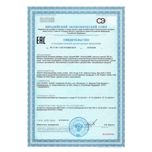 В качестве биологически активной добавки к пище - источника глюкозамина, хондроитинсульфата, содержащей метилсульфонилметан (МСМ).