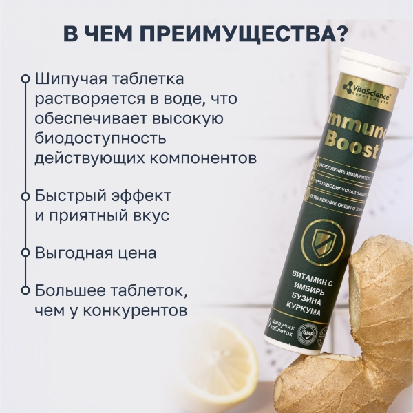 ✓ Купить Vitascience Иммуно Буст таблетки шипучие, №20 можно на сайте, в мобильном приложении и в аптеках Вита