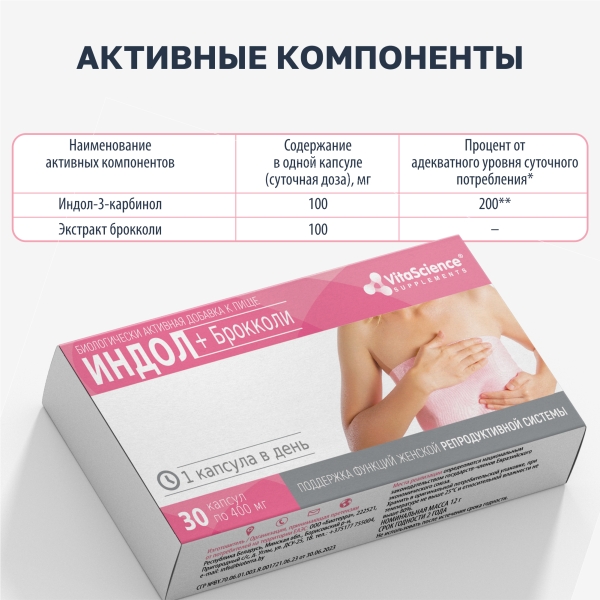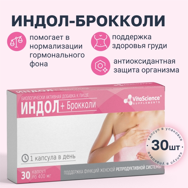 ✓ Купить Vitascience Индол+брокколи капсулы, №30 можно на сайте, в мобильном приложении и в аптеках Вита