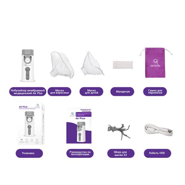 Небулайзер мембранный портативный, беспроводной медицинский Air Plus MED-2000 RUS.