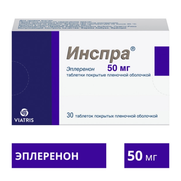 ✓ Подробная инструкция по применению Инспра таблетки покрыт. п/о 50мг, №30